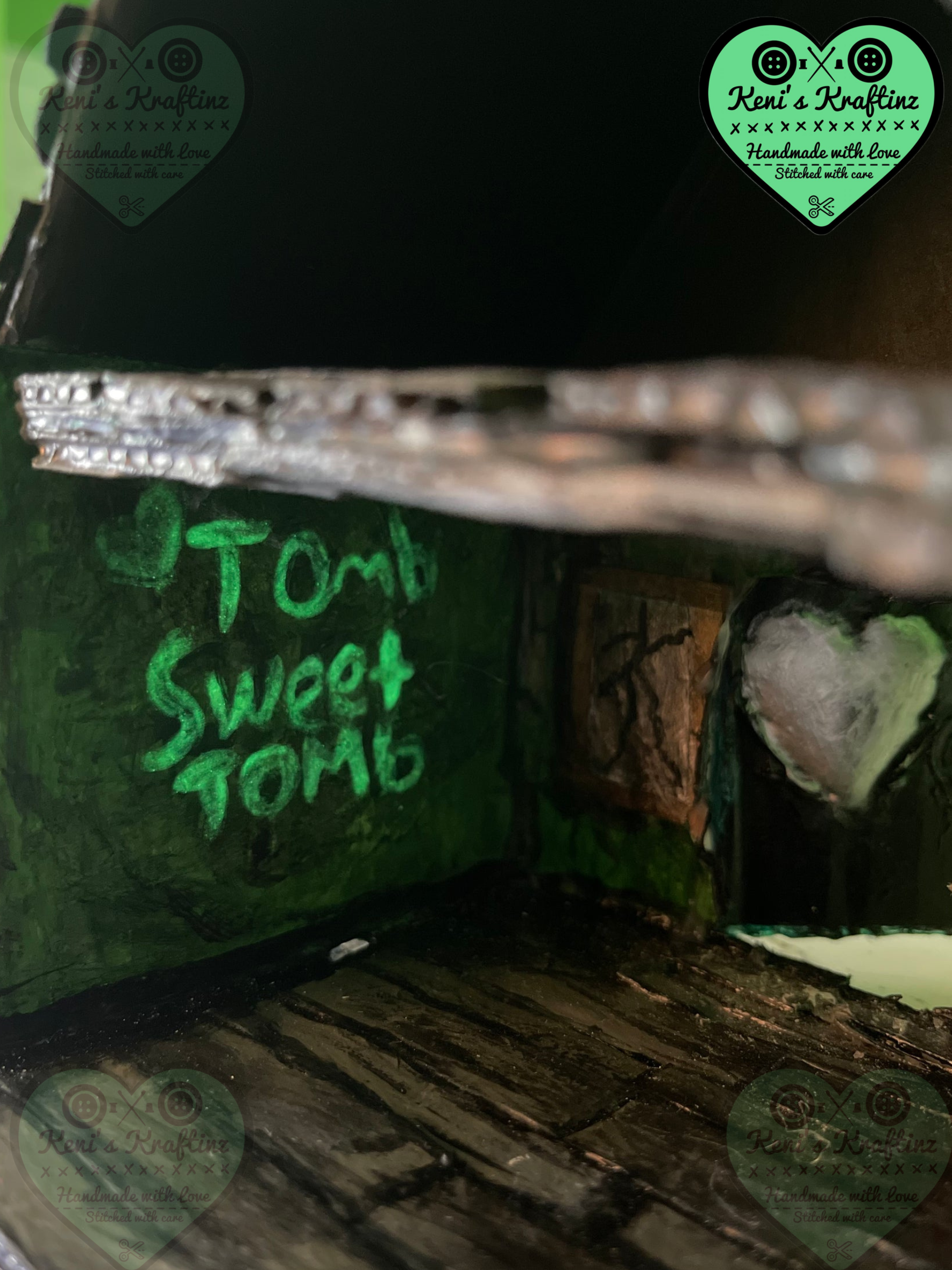 Each and every single Haunted House is made by hand, out of cardboard boxes, an assortment of glue, and painted accordingly. I then make each and every single detail painstakingly with complete disregard of my own safety doing this, as I am left alone in a room full of KNIFES. The house is fully sealed within a acrylic gloss medium (I have upgraded), and everything is completely to bring life to the cardboard boxes that surround & suffocate me.